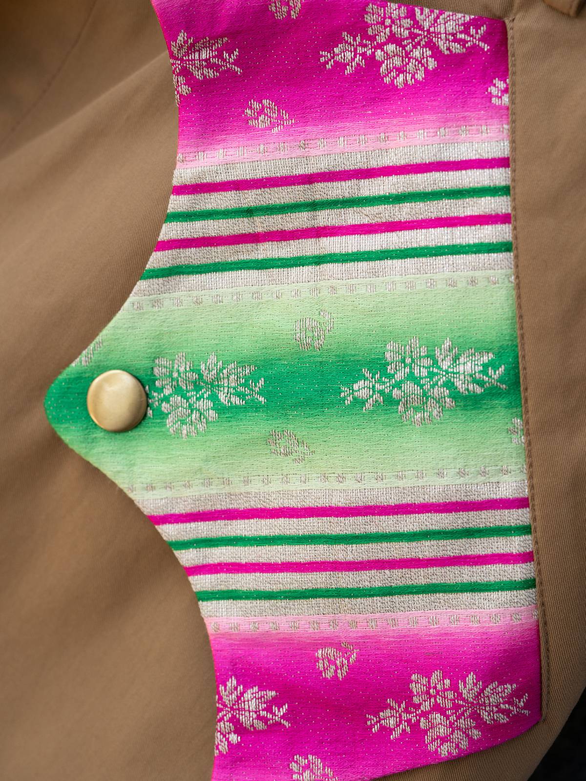 Trench-weave cotton skirt crafted in a trapeze-inspired shape, with rare vintage fabric inserts on the pockets — each a relic from another time, chosen like a charm.