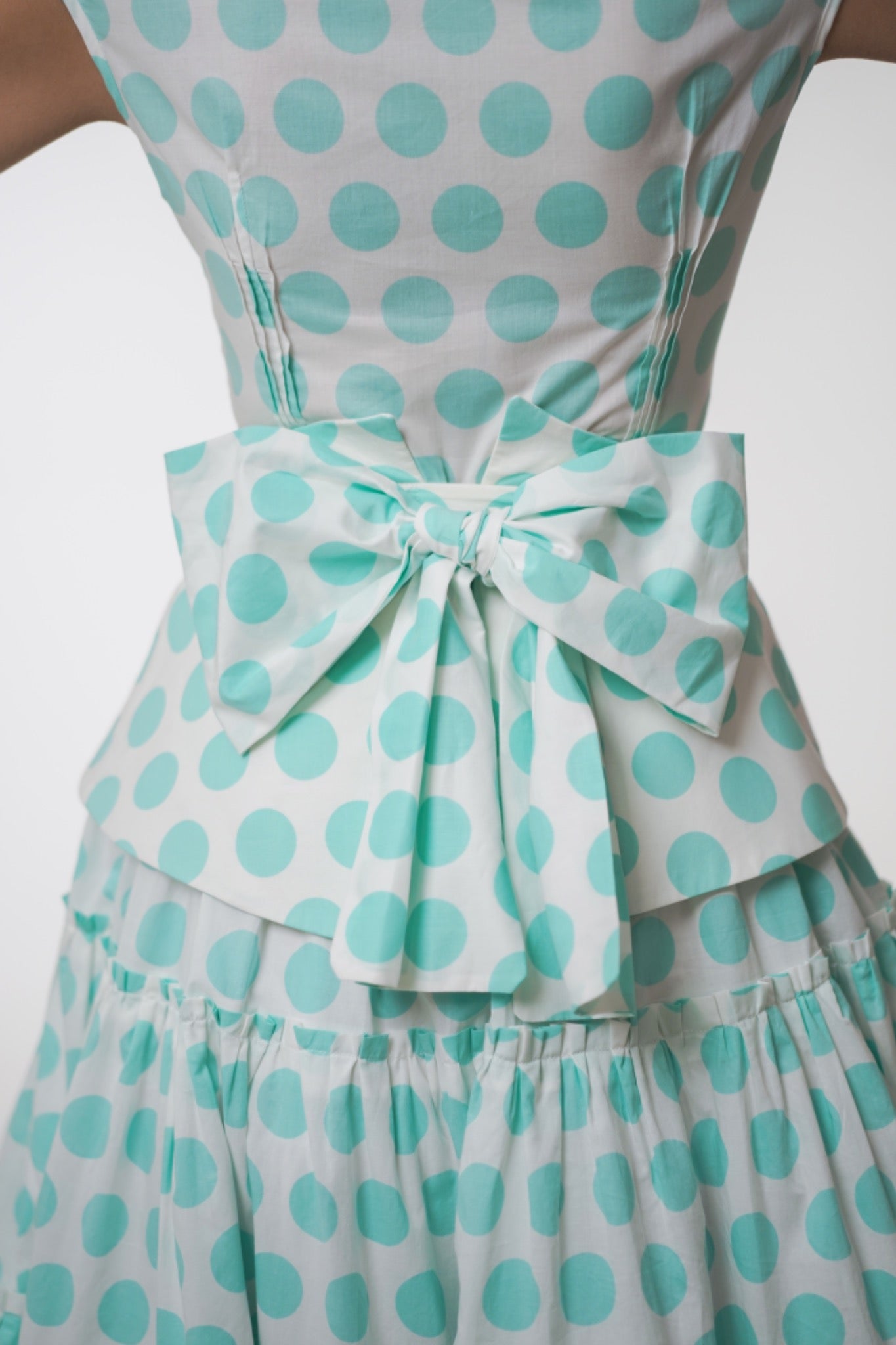 The waist is defined by a removable basque-style belt adorned with a decorative bow. Can be worn layered with the Volare Volume Skirt from the for added volume.