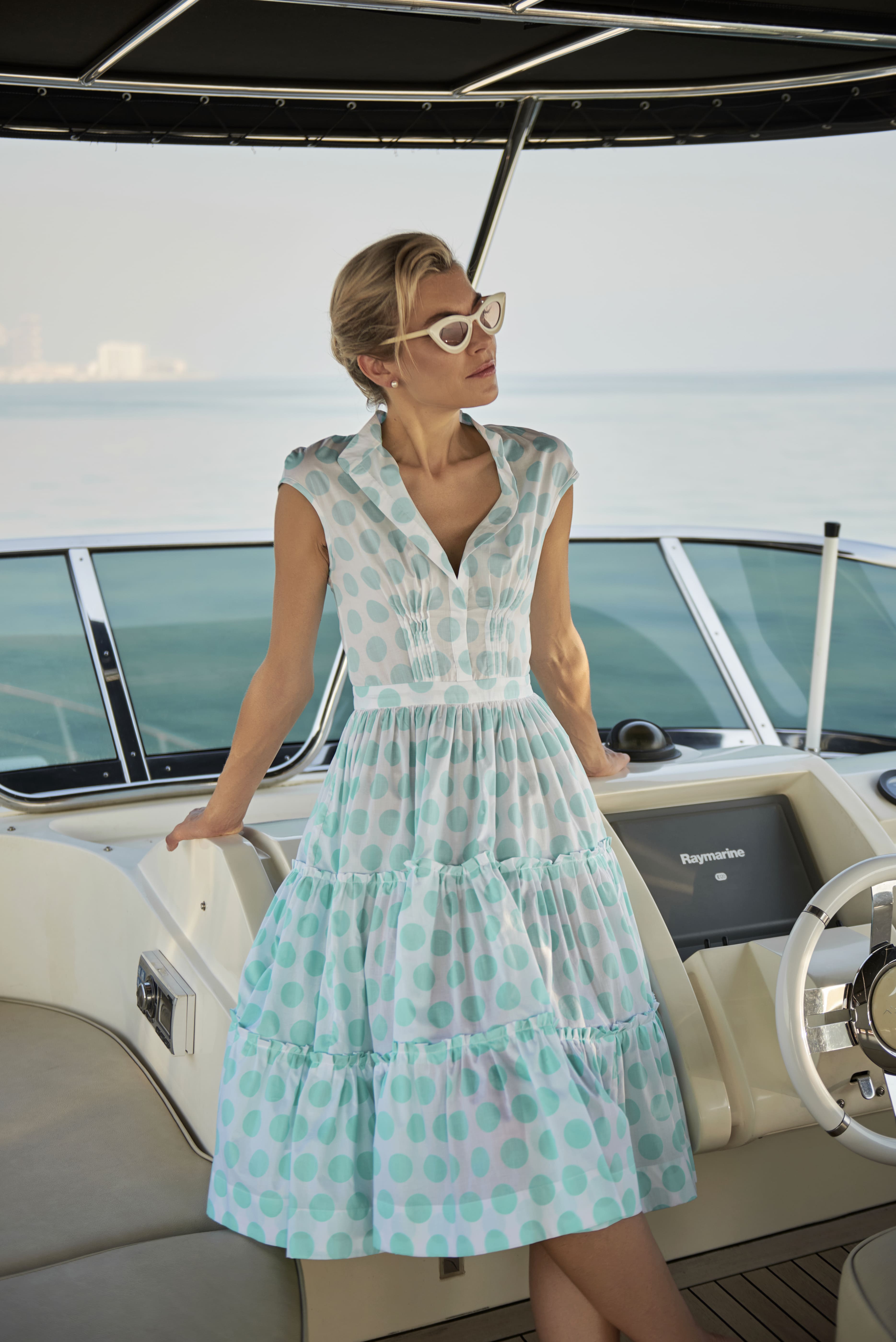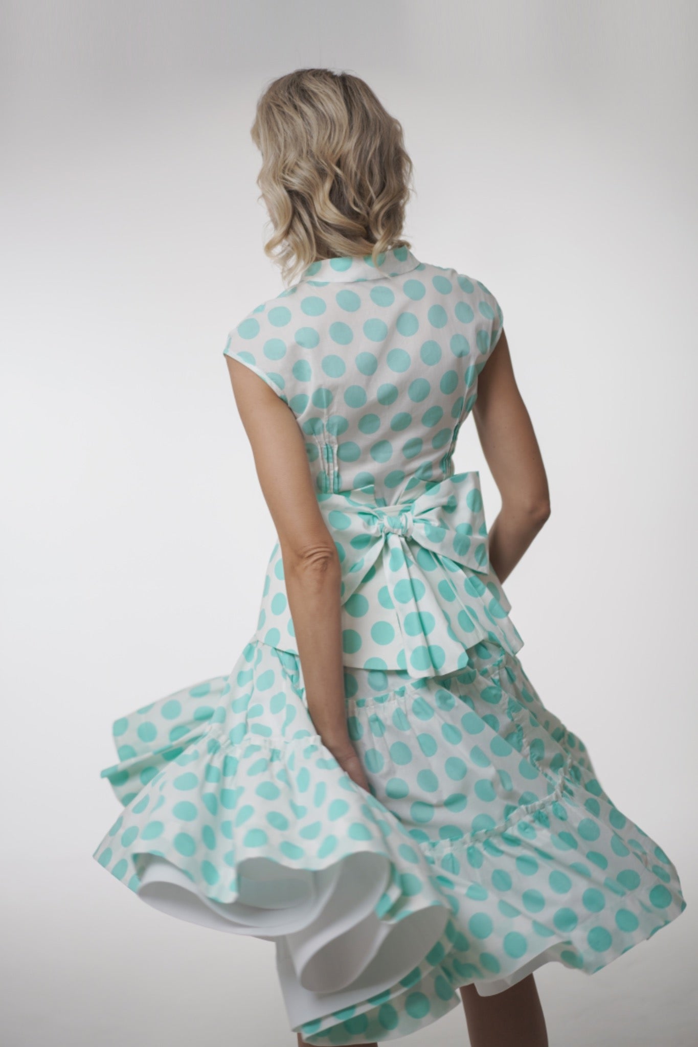 Available in fresh mint or sunny yellow with playful polka dots.